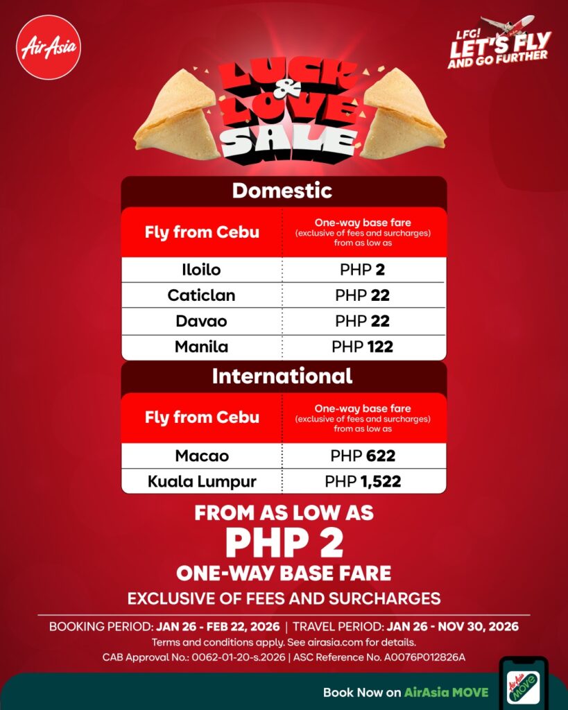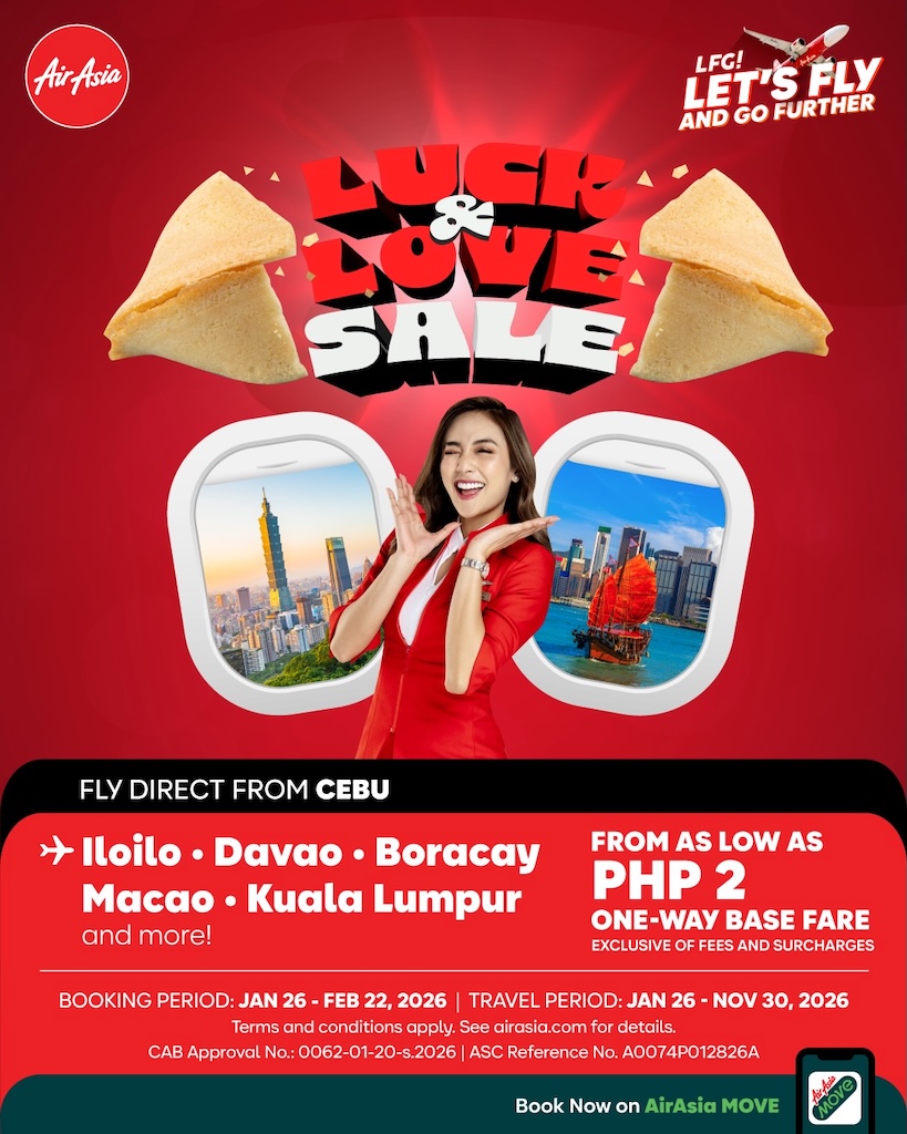 As the season of love approaches, AirAsia Philippines is giving travelers a reason to celebrate beyond the usual flowers and chocolates. The airline has officially launched its “Luck and Love” promo, offering unbeatable one-way base fares starting as low as PHP2.00 from Cebu and Manila, making it easier for passengers to create meaningful experiences and unforgettable memories.