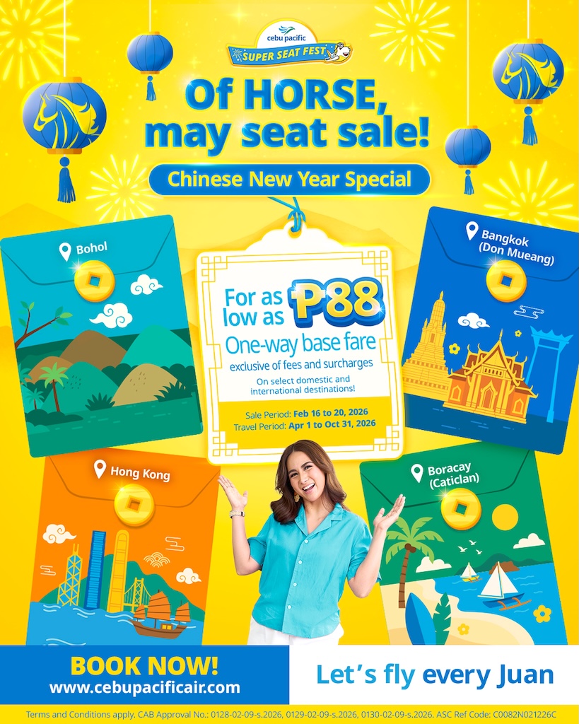 Cebu Pacific is ringing in the Chinese New Year with an exciting seat sale, giving travelers the perfect opportunity to plan their 2026 adventures. From 16 to 20 February 2026, passengers can book flights to select domestic and international destinations starting at just PHP 88 one-way base fare, exclusive of fees and surcharges, while seats last.