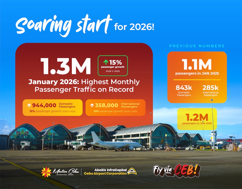 Mactan-Cebu International Airport (MCIA) has kicked off 2026 on a strong note after recording a historic 1.3 million passengers in January, marking the highest monthly passenger traffic in the airport’s history. The figure represents a solid 15% increase from the 1.1 million passengers logged during the same period in 2025, highlighting the sustained recovery and growth of air travel in Central Visayas.