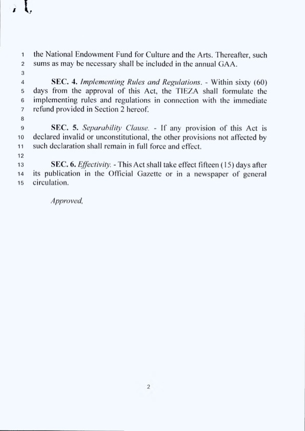 Under the current law — specifically, Section 73 of Republic Act No. 9593 or the Tourism Act of 2009 — travel tax revenues are divided among three agencies: 50% goes to the Tourism Infrastructure and Enterprise Zone Authority (TIEZA), 40% to the Commission on Higher Education (CHED) for tourism-related programs, and 10% to the National Commission for Culture and the Arts (NCCA).